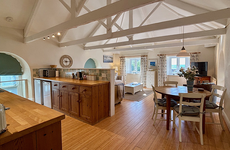 Set in an ‘upside down’ design, the open plan living space is thoughtfully positioned on the first floor to make the most of the glorious uninterrupted sea views. The property is bright and airy, lovingly furnished with a relaxed coastal feel.