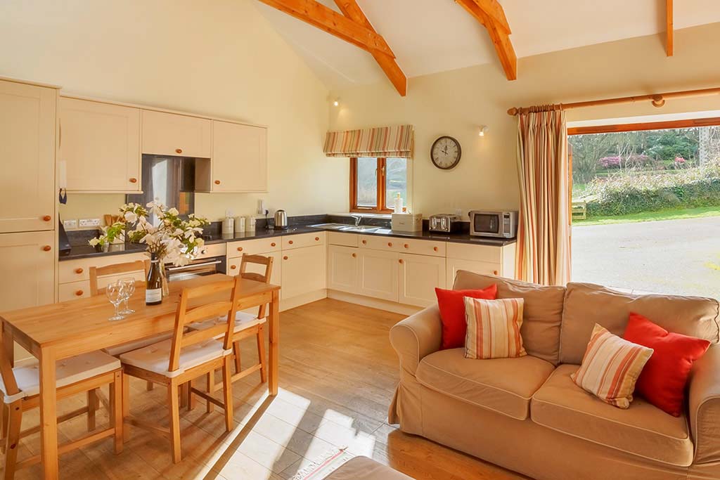 The inviting living space has comfy seating with a wood burning stove to cosy up to for relaxing after a day exploring. The fully equipped kitchen is perfect for everything, from holiday breakfasts to home-cooked dinners with oven, hob, microwave, full-size fridge/freezer and dishwasher. There are two beautifully appointed bedrooms, one a double and the second a twin but could be made into a second double on request.